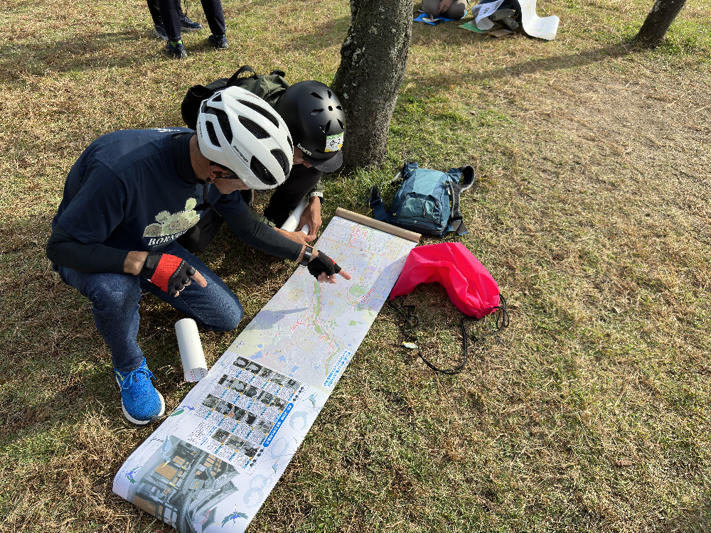 サイクリングとロゲイニングを合わせたイベントで、自転車や徒歩で、地図と写真を見ながら制限時間内にチェックポイントをまわり、獲得したポイントを競います。