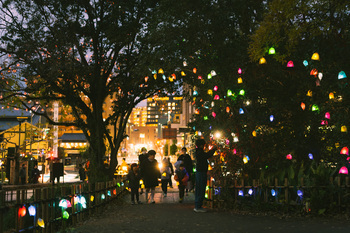 約3千個のひかりの実が、夜の道後公園を彩ります。