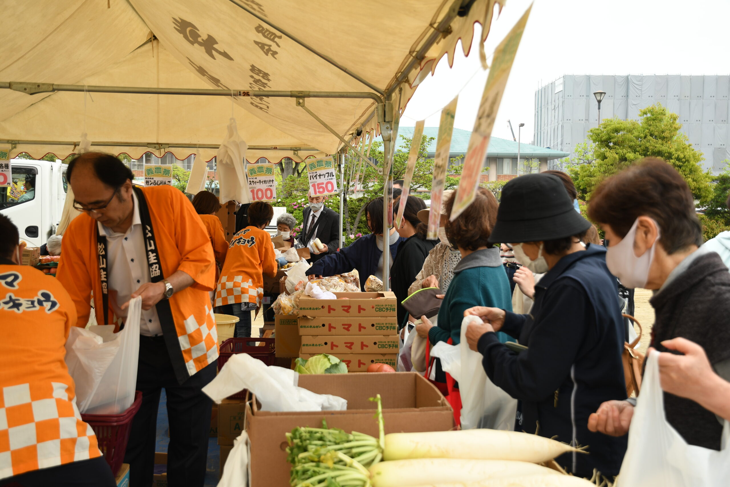 義農神社で式典、松前公園でふる里市(特産品等の販売)、小学生による義農太鼓などの演芸を予定しています。