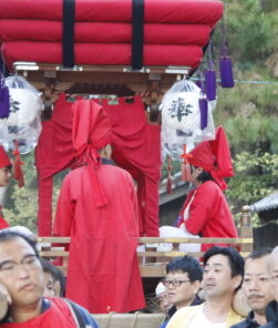 秋祭りは氏神様の例祭です。ごちそうを作って親戚や知人を招き、秋の収穫を祝います。春祭りに収穫した米、麦などと無病息災を祈願して秋祭りに収穫のお礼のために神様に甚句を踊って奉納します。